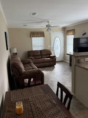 Lovely 2-bedroom, 2-bath home. This 2016 home features a 2023 roof replacement, a 2024 water heater replacement, a new garbage disposal, and a new dishwasher. The home furnishings include a living room set with a 65" television the sits on a free standing fireplace, a dinette set, barstools, and the master bedroom set. Come and sit on the screened in front porch and enjoy your morning coffee!