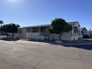 Discover this unique and rarely available 18-foot-wide front-living room floorplan offering an abundance of natural light and an open, airy feel. Featuring easy-care wood laminate flooring throughout, this well-maintained home is both stylish and practical.Built with sturdy 2x6 construction and dual-pane windows, plus a newer composition shingle roof, this home offers long-term peace of mind. The bright kitchen includes a breakfast bar and opens to the living and dining areas. A separate laundry room with washer and dryer included.Enjoy two generously sized bedrooms, including a primary suite with a large walk-in closet and ensuite bathroom. Outside, relax in the 8x16 raised and screened porch. There is an 8x12 shed with electric. Accessibility is a plus with an exterior access ramp.Set on a desirable corner lot in a quiet, tucked-away section of the park, with mature orange and grapefruit trees. Located in the beautiful Bella Capri, a gated 55+ community on Tucson's northwest side, offering easy access to freeways, shopping, and entertainment.Don't miss this unique opportunity-schedule your showing today!
