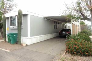 The large and open living area is great for you and your many guests. Enjoy the privacy of the split bedroom floorplan and the convenience of the primary bedroom ensuite bathroom. There's a separate guest bathroom next to the second bedroom for the children or guests. The eat-in kitchen has updated appliances and lots of storage. There's easy-care laminate flooring throughout the home. On those pleasant days and evenings you'll love relaxing or entertaining on the large covered deck. The partially-fenced yard is perfect for your pets. Diamond Grove Estates is a family-friendly community located on the near northwest side. It has a swimming pool, spa, playground, clubhouse, volleyball court, basketball court, library, laundry facilities and WI-FI. Two large non-aggressive dogs are permitted. The park is close to Flowing Wells schools, shopping, the freeway and Curtis Park which has access to the Rillito River Park.