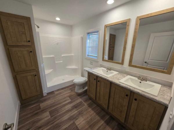 Stunning Double-Wide home coming to Park Plaza soon. This eBuilt home has 8' flat ceilings throughout, DuraCraft soft close cabinets, brand new stainless steel Samsung Smart appliances, and elongated toilets. This home comes with a 40 Gallon Hybrid Water Heater with Heat Pump, a High Efficiency Gas Furnace with an Ecobee smart thermostat, and a brand new shed, covered deck and steps are also included.