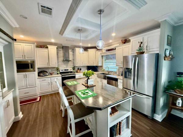 Home is located in Water Oak Country Club Estates and active 55 plus resort style, land lease community in Lady Lake Florida. This one has ALL the bells and whistles!! This is a highly sought after Admiral model. This home has been meticulously maintained and upgraded. Interior freshly painted. Beautiful awnings and gorgeous landscaping add to the curb appeal. Gutter guards make maintenance easy! Home is already equipped with 50 amp hookup, all set for your generator, capable of running the entire home. Soft start system has been added to the AC/Heat pump to help protect the unit from a power surge. Large two car garage with convenient storage. Absolutely stunning kitchen with huge island and plenty of cupboard and counter space. Attractive white cabinetry and a coffered ceiling make this a dream kitchen to be proud of! Huge pantry with barn doors, and stainless steel appliances. The comfortable living room boasts coffered ceilings and attractive arches. Cornices and large crown molding, as well as Luxury Vinyl Plank flooring throughout! Plenty of windows and lighting make this home bright and cheerful. The split floor plan provides privacy for you and your guests. A third bedroom would make a great craft room or office. Your guests will enjoy a full guest bathroom with walk in shower. The primary bedroom is spacious and has a walk in closet. The primary en suite bathroom is absolutely stunning! Large roman shower with duel controls, and a transom window as well as double sinks! Lighted mirrors add a touch of class! Tons of linen and storage space. Convenient indoor laundry room located just off the kitchen, has plenty of storage, as well as a wash basin. Washer and dryer convey. Enjoy the gorgeous Florida sunsets from your private rear lanai located just off the laundry room, equipped with custom power blinds. You would be hard pressed to find a more upgraded, high quality, unique model home than this, located in Water Oak Estates, this is truly a one of a kind home. Home is centrally located in the community, very convenient to all entrances and the resort style amenities. Be the envy of the neighborhood in this stunning home! Come tour this one of a kind home today! Water Oak Country Club Estates is a 55+ Active Community and you will find something to do every day of the year if you so choose!! Clubs, entertainment, swimming. all kinds of sports, you can even join one of the softball teams! A brand new third pool complex is getting ready to open! The Golf Course has been newly renovated and there is a new menu of delicious food at the newly renovated restaurant. Better hurry on this one!!