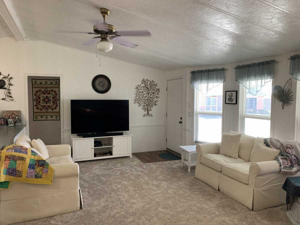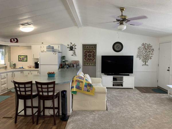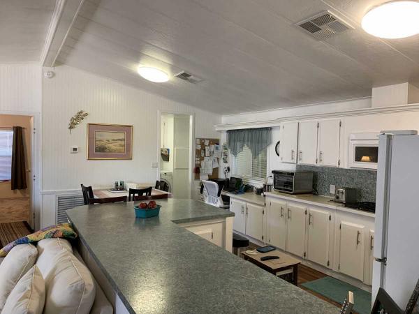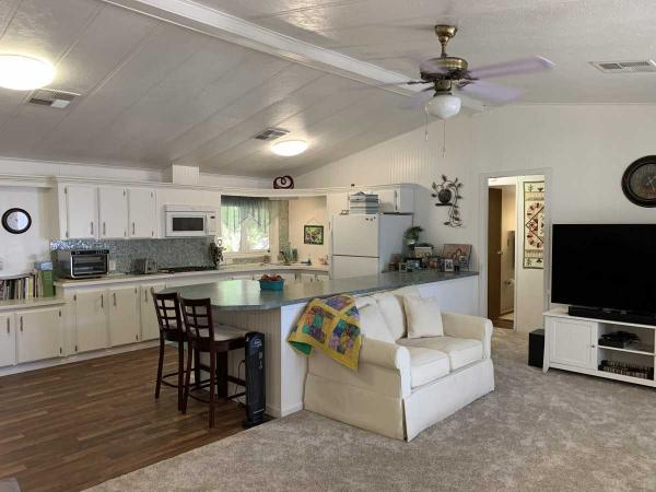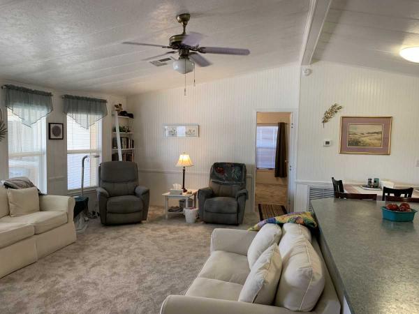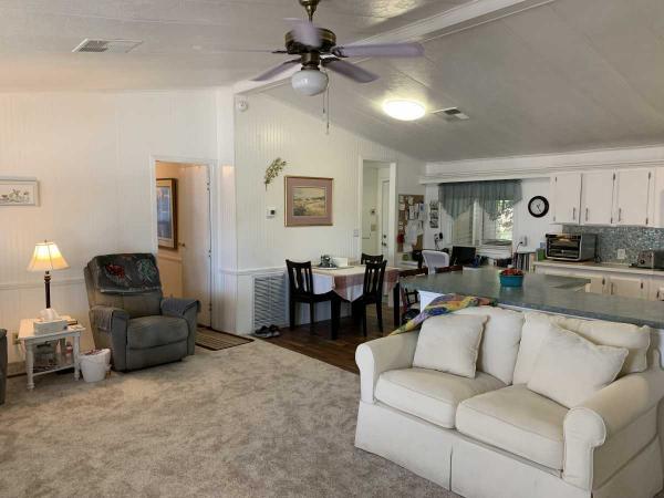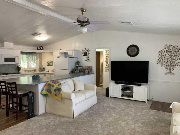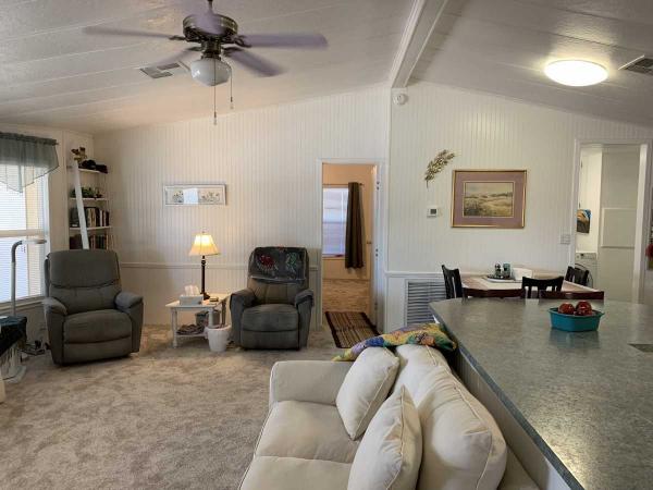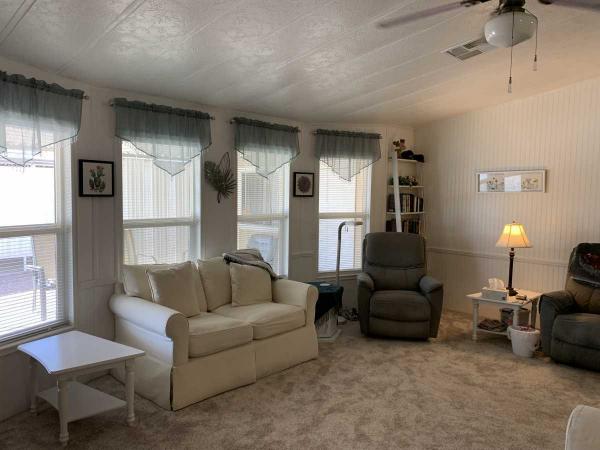 This fully furnished 3-bedroom ground set home has an open floor plan with 2 bedrooms at the front of the home and the master bedroom at the back of the home. The master has a walk-in closet, and the master bath has a step-in shower. There is wood flooring in the kitchen, laundry room and both bathrooms. The bedrooms and the living room have new carpeting. The kitchen has ample cabinets and loads of counter space with an eat in bar on the end of the counter. A gas stove top,the microware is a convection oven as well. Has a great built-in spot in the kitchen for you to sit with your computer. Both the second and third bedrooms have a built-in dresser and double closets. Gas water heater and furnace. The windows throughout are double paned, has a newer roof and a/c unit just installed in September of this year. This home also has 2 storage sheds, one on each side of the home. A nice long patio to sit on and enjoy the great Arizona weather. Even has an outdoor grill for entertaining friends and family. This is a must-see home - You will just enjoy.