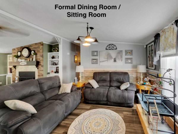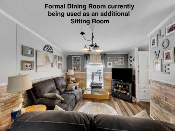 From the COVERED PORCH, you can enter the home from 2 different doors, either into the Living Room or Breakfast Nook. The Slider enters into the BREAKFAST NOOK and is open to the Kitchen. The KITCHEN has a nice ISLAND with storage, PLANK FLOORING, LAMINATE COUNTERS with a beautiful BACKSPLASH, a CEILING FAN, spacious PANTRY, and Appliances that will stay with the home - ELECTRIC RANGE, DISHWASHER, REFRIGERATOR, EXHAUST FAN, and DISPOSAL. The Kitchen sits between the Breakfast Nook and Formal Dining Room (currently being used as an additional Sitting Room). This FORMAL DINING ROOM will easily fit a six-seater table and has PLANK FLOORING that matches the Kitchen.