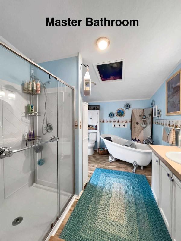 The MASTER BEDROOM has a large WALK-IN CLOSET, a CEILING FAN, CARPETED FLOORING and its own PRIVATE BATHROOM. The MASTER BATHROOM is gorgeous! It has PLANK FLOORING, a GLASS WALK-IN SHOWER, LARGE LINEN CABINET, DEEP CLAW TUB, PORCELAIN SINK, a NEW TOILET and NEW FIXTURES.