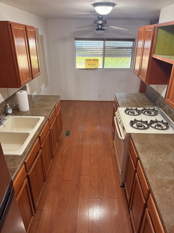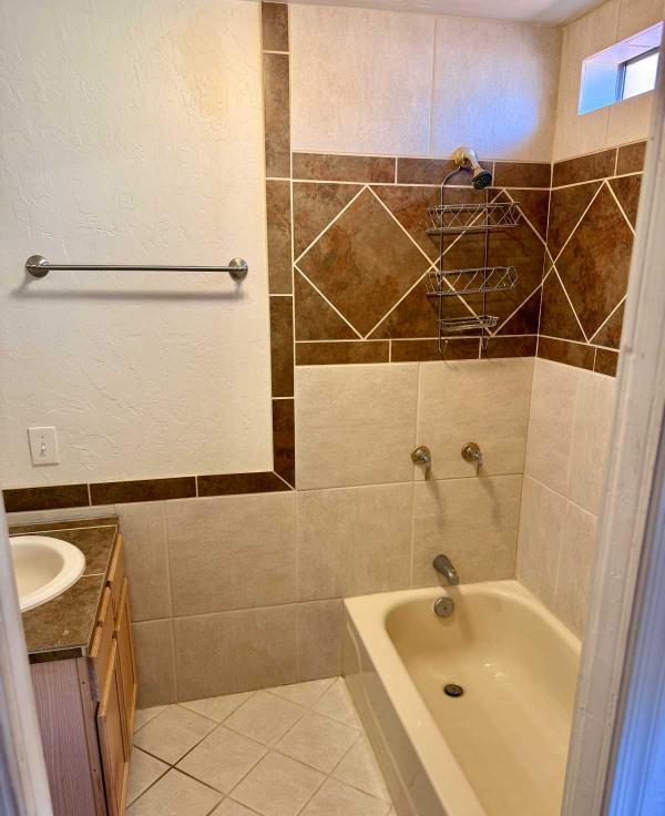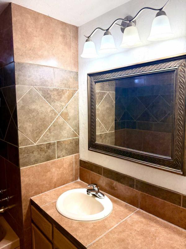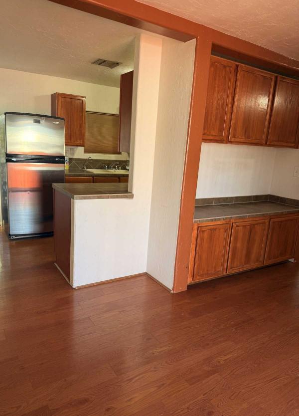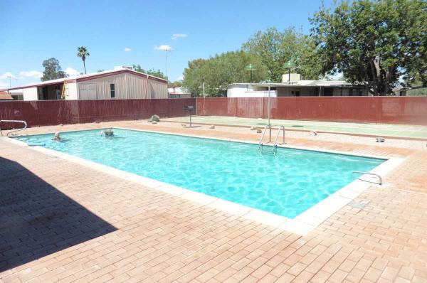 NICELY UPDATED AND COZY MOBILE HOME IN CENTRALLY-LOCATED PARK! The kitchen has all ceramic countertops, genuine wood cabinets and newer double sink and faucets. The dining area is conveniently located next to the kitchen. A built-in mini bar in the living room is great for entertaining or additional storage. Both bathrooms have been updated with ceramic vanity tops and tub surrounds. There's EZ-care laminate flooring throughout the home. The home is equipped with a gas-pack (furnace and central air-conditioning) that is still under warranty. Your pets will enjoy the fenced yard and there is a backdoor ramp for ease of entry. Rayo De Sol is a very nice 55+ community centrally-located with a socially-active clubhouse and swimming pool. Small indoor pets are permitted. The park is near shopping, restaurants, entertainment and transportation. You'll love the budget-friendly space rent of $440 per month. This is one of the lowest space rents of any quality adult community in the Tucson area.
