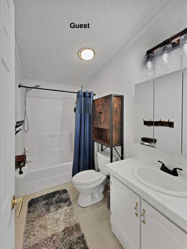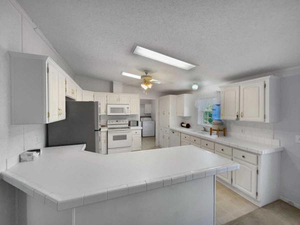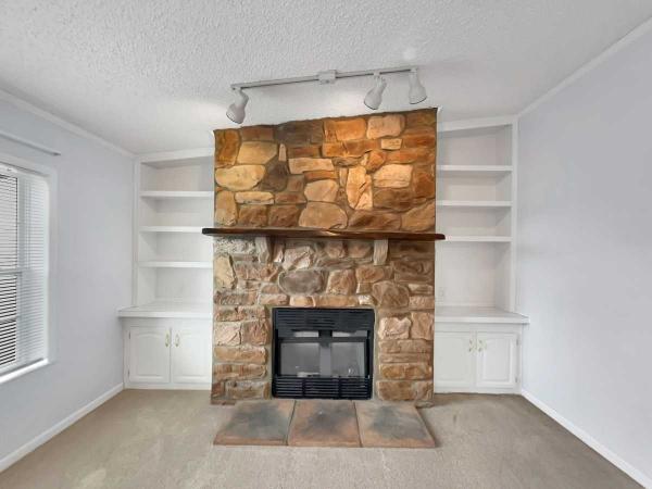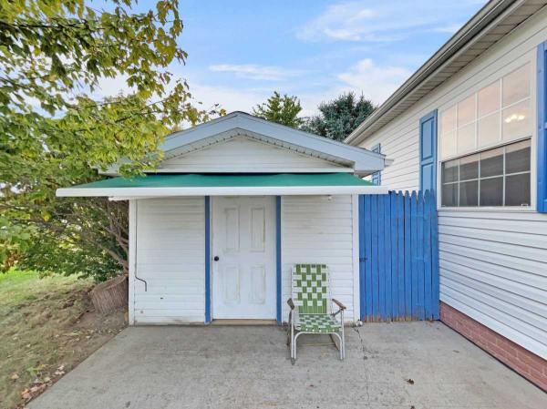 This home measures 28x65 (1820sf) and has 3 bedrooms, 2 bathrooms, 2 living areas and a 2 CAR GARAGE. Exterior features include a 20x20 2-CAR GARAGE, VINYL SIDING, FAUX BRICK SKIRTING, SHUTTERS, GUTTERS, 2 SET OF EXTERIOR WOODEN STEPS, and a SHED. The 2 CAR GARAGE has a garage door opener and tons of storage.