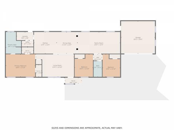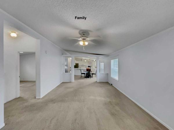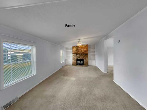 At the opposite end of the home is the FAMILY ROOM which has a CEILING FAN and beautiful BUILT-IN SHELVING. The remaining 2 bedrooms and the Guest Bathroom sit off the hallway from the Family Room. BEDROOMS 2 AND 3 both have CARPETED FLOORING and spacious closets. The GUEST BATHROOM has VINYL FLOORING, a TUB/SHOWER COMBO, and a PORCELAIN SINK.