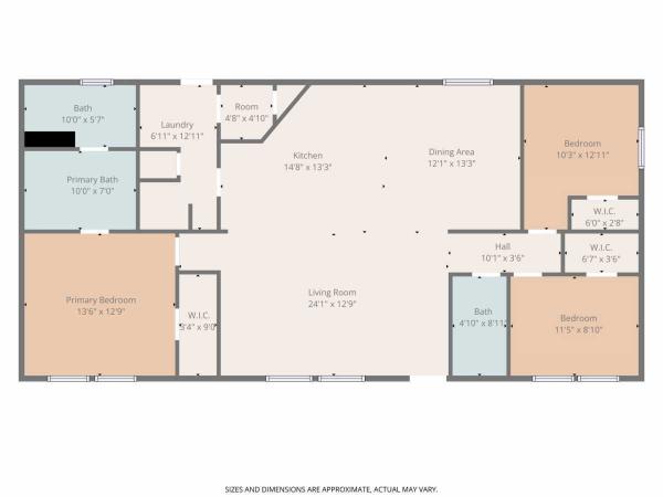 The home has a SPLIT FLOOR PLAN with the Master Bedroom sitting at one end of the home and the remaining 2 bedroom and Guest Bathroom at the other end.