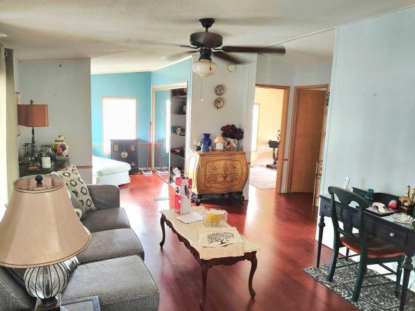 Absolutely impeccable young "1992" Custom model doublewide with 2 large bedrooms, 2 full bathrooms, Living room, dining room, Modern cabinet lined kitchen, INDOOR laundry room. Laminated flooring. AND A LARGE FRONT PORCH.