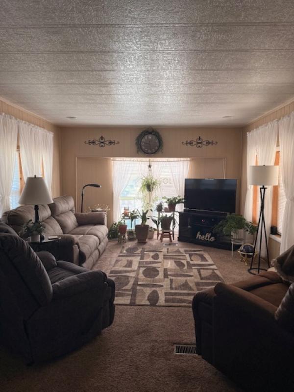 This home has been updated throughout. The home features 2 bedrooms and 1 large bath. The living/dining/kitchen are all open to each with updated flooring and new windows. Lot's of storage in the kitchen with updated appliances. The dining area has a beautiful coffee clutch area. Lots of light in the living room. Great sized bedrooms, with an extra large master. The laundry is just off the large bathroom. This home has a carport and features a large Amish shed plus a small metal shed. The home backs the woods for extra privacy. This is a must see home. Our community allows one small dog, max of 35lbs.