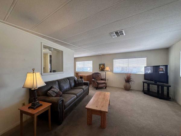 Major systems have been updated, including the A/C, furnace, and water heater. The open layout offers two generously sized bedrooms, each with its own walk-in closet.