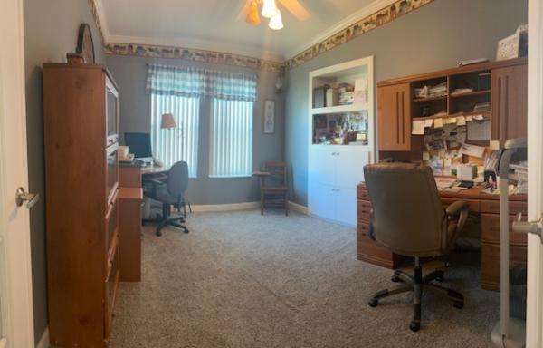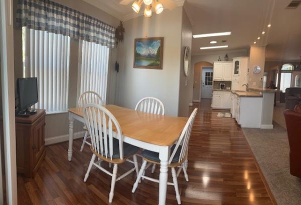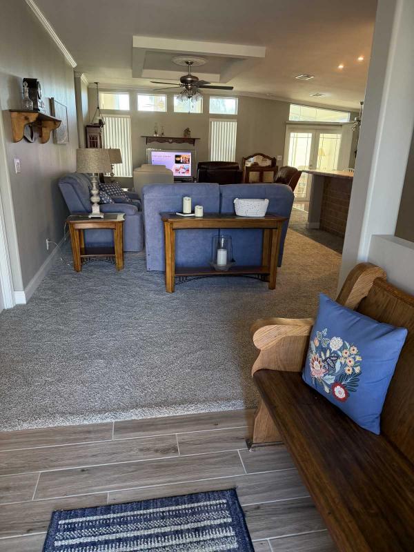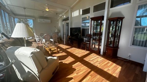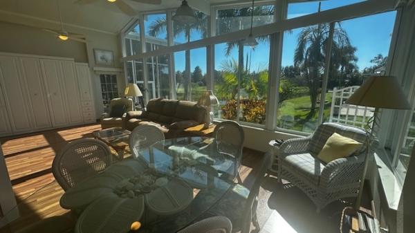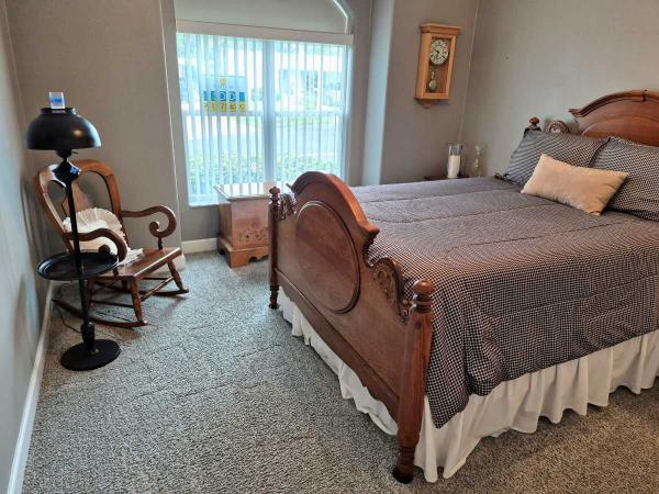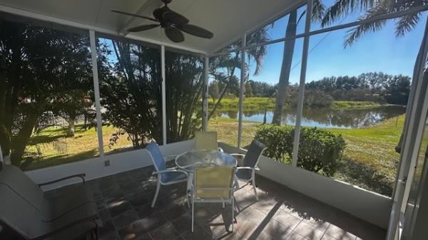 Spacious 2,000 sq. ft. three-unit open-concept mobile home in a peaceful 55+ Florida community - 2 bedrooms, 2 full baths, fully furnished office and a light-filled living area that flows effortlessly into the modern kitchen, perfect for entertaining. Relax with serene water views from the private screened-in patio as well as the large lanai that boasts a queen murphy bed for extra guests. This home comes fully furnished so all you have to do is walk in and enjoy! The beautiful well-maintained residence also includes architectural upgrades, a covered front porch with porch swing, a two-car garage with a separate workshop area, plus an additional enclosed garage space for your golf cart. Enjoy peace of mind knowing the roof is less than 5 yrs. old, along with the AC, PLUS A 10 YR. WARRANTY! Rest easy with the low-maintenance landscaping and single-level living designed for comfort and convenience in a friendly, active community.