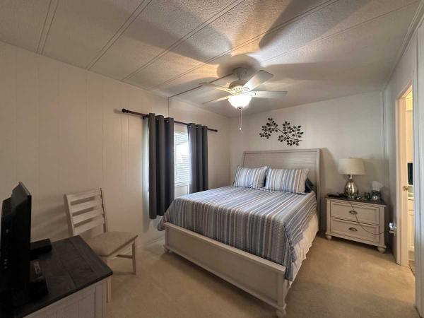 Good condition and ready to move in! Set on perimeter lot a short walk from 2nd clubhouse area and relaxing pool. Freshly painted exterior and newer 6x14 Tuff Shed. Front door entrance off a raised 8x24 screened in porch area with views! Front living room floor plan with vinyl tile in main portion of home. All updated appliances with Newer Central A/C gas furnace. A/C, washer, dryer, shed, dishwasher, and disposal all installed in the past year. A skylight in the living room provides bright natural light to the space. Kitchen has plenty of cupboard space and a pantry closet. Guest bedroom has a Jack and Jill bathroom entrance for privacy. Master bedroom complete with large walk in closet. Home will be mostly furnished with the exception of personal effects. Home has been re plumbed with CPVC plumbing.Call Justin Dempsey to set up a showing today!
