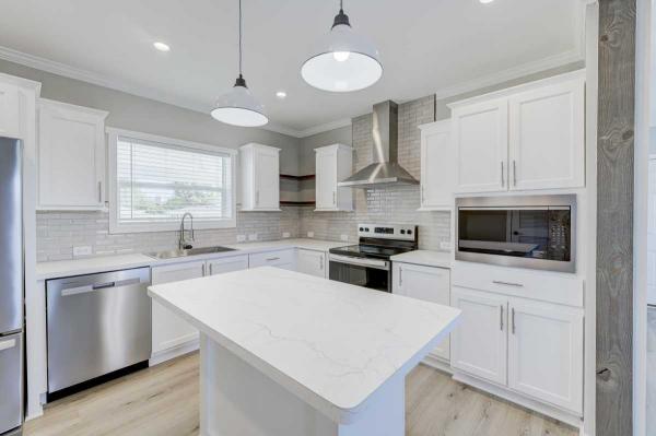 Beautiful brand new Palm Harbor home! This home features a beautiful kitchen with tile backsplash, stainless steel appliances, and LVT flooring. The master bathroom has a beautiful "floating" vanity with under lighting. The shower is tiled and features multiple shower heads as well as a built-in teak seat. The home is built to 150 mph wind loads and is set to the new FEMA flood rules. This is a must see home