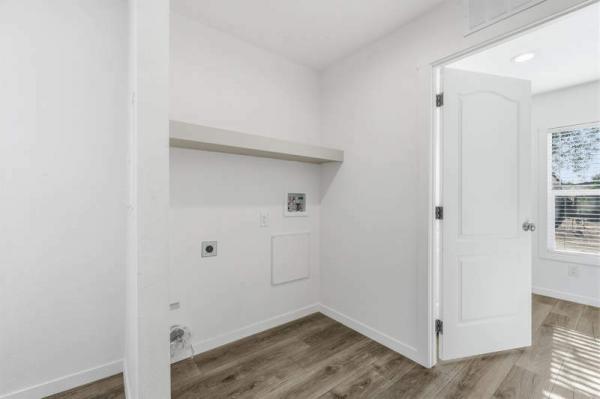 This 869 square foot manufactured home at Carousel Ranch in Tucson, AZ offers a cozy and modern design with 3 bedrooms and 2 bathrooms. Built in 2024 by CMH Manufacturing West, this home features a spacious living room, a master bedroom with an en suite bathroom and walk-in closet, a bonus room that can be used as a home office or playroom, a fully equipped kitchen, and a convenient laundry room. The exterior of the home boasts a charming patio and trees on the property, providing a serene outdoor space for relaxation and entertaining. Inside, the home is equipped with stainless steel appliances, including an oven, fridge, and dishwasher, as well as a hot water heater, washer/dryer hook up, and central A/C for added comfort and convenience.