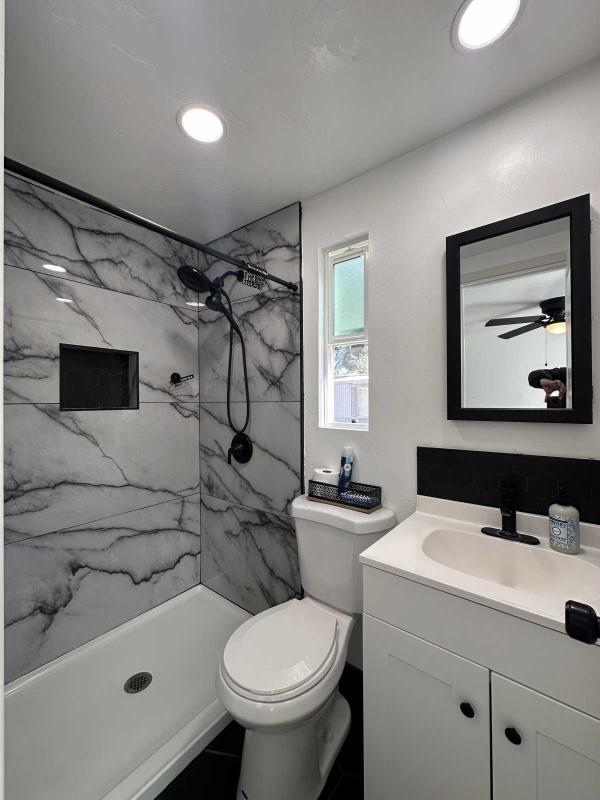 Gorgeous split-bedroom 14x66 home, completely remodeled and ready for a new owner. Features newer dual-pane windows throughout, PEX plumbing, recessed lighting, all-new cabinetry, and granite countertops. Updated bathrooms include ceramic-tiled showers and new vanities. Tape and textured interior throughout. New 2025 central A/C and furnace, plus a newer gas water heater. Updated entry door with two security screen doors. Kitchen includes a convenient pantry.