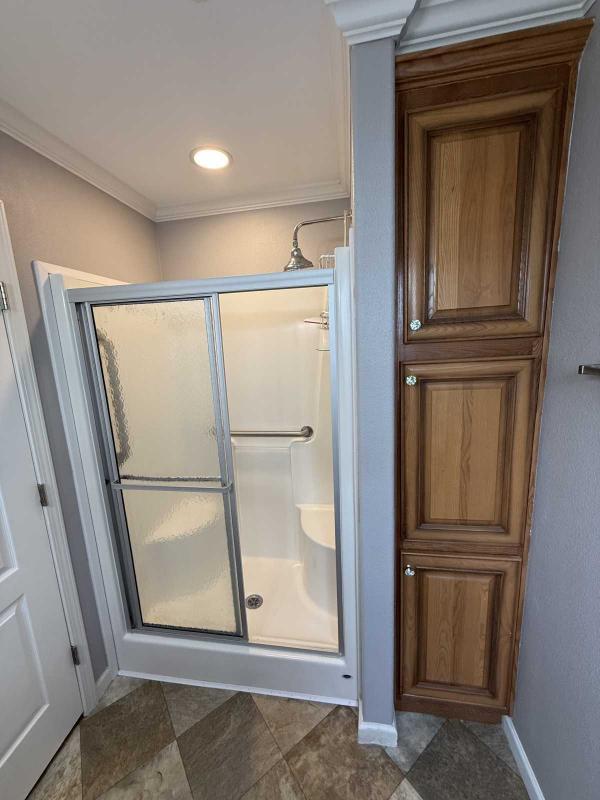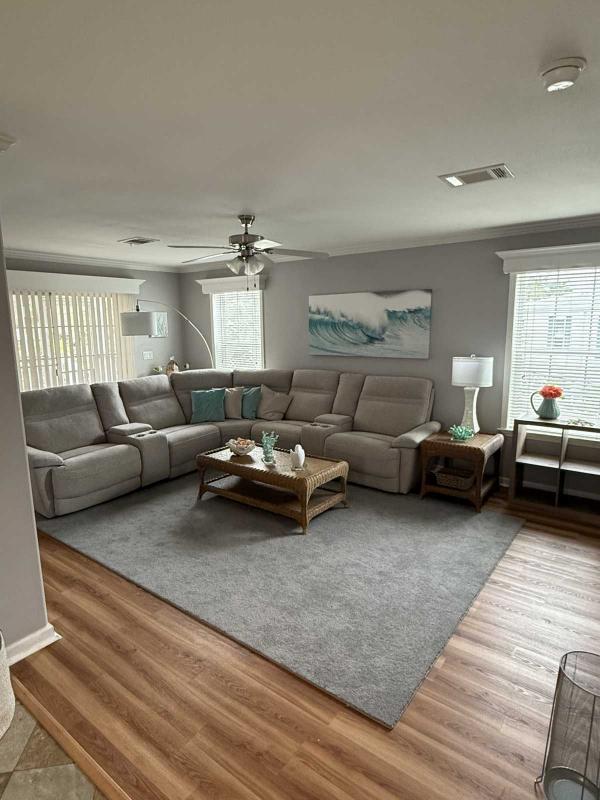Welcome Home!!! This lovely double-wide home has it all. Full turn-key package includes all your kitchen needs, bath towels, and bed linens. This beautifully furnished home has wood cabinets, recently replaced carpet, new roof in 2025, and the water heater replaced in 2023. The guest bathroom is a jack and jill bathroom serving the hallway and the guest bedroom. Enjoy your morning coffee on the screened-in back porch with a partial view of the lake. Truly a must see home!!