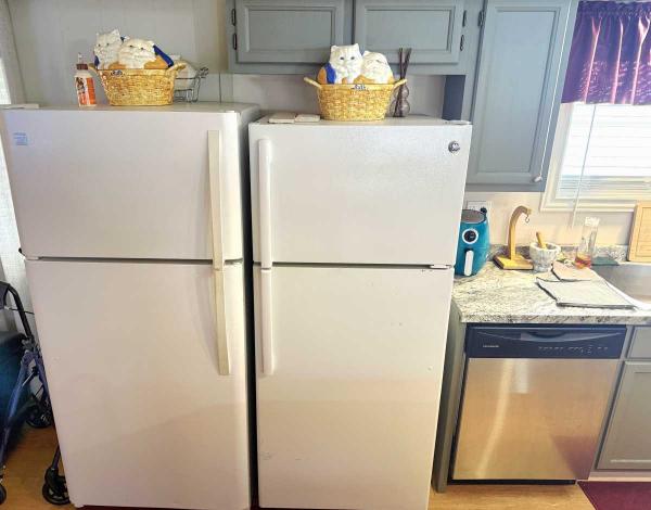 This (Appx 1,500sqft) home is built like a house. 3 large bedrooms. 2 full bathrooms, open concept with a huge NEW cabinet lined kitchen with granite countertops and an ISLAND. with recessed lighting. BRAND NEW Central heat and A/C system, 2 storage sheds, FIREPIT in the big "FENCED IN BACK YARD with a chain linked fence. (2) 40lb dogs are permitted. There is an attached COVERED PATIO with BBQ which is excellent for grilling and gatherings. 9 appliances which include 4 refrigerators, 2 in the home and 2 in the shed. Glass top range. Brand new washer and dryer. Laminate floors thru out, new doors, new blinds and best of all....FULLY FURNISHED.