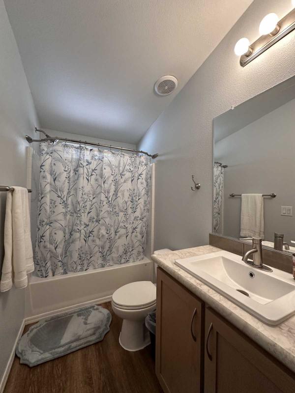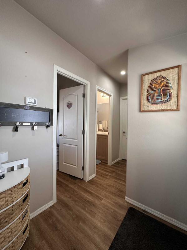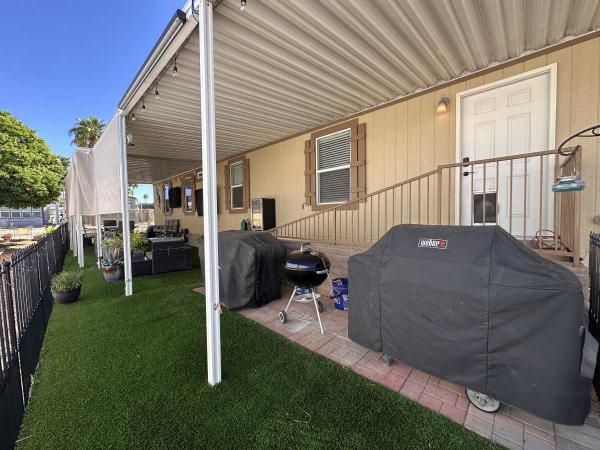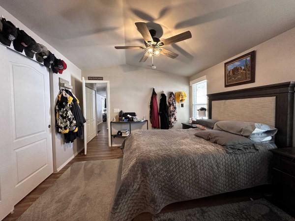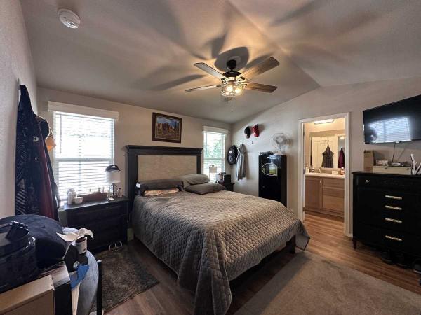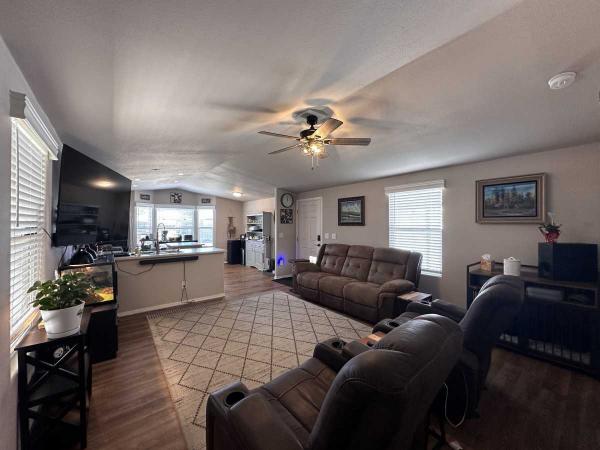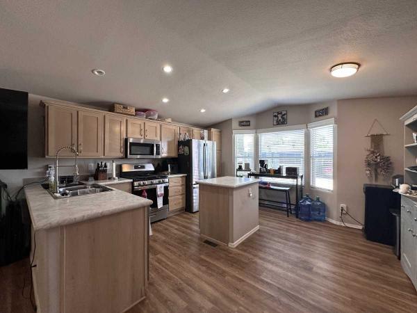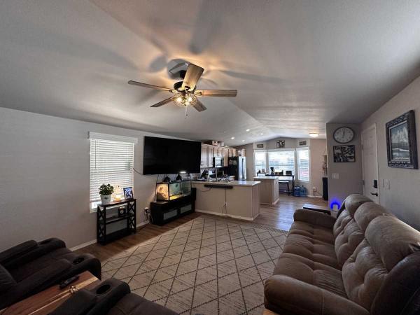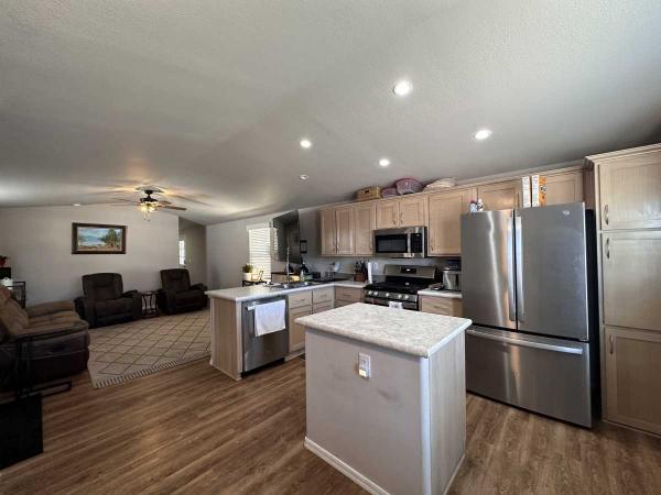 Impeccably maintained 2020 Cavco home located in a highly desirable gated 55+ community on the east side. This beautifully designed 2-bedroom, 2-bath residence features a bright and airy front island kitchen with abundant natural light, cathedral ceilings, and modern recessed lighting. The kitchen comes fully equipped with stainless steel appliances, including a French door refrigerator.