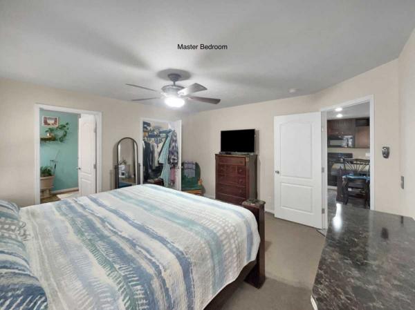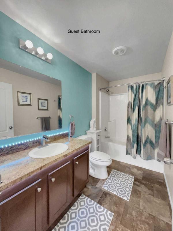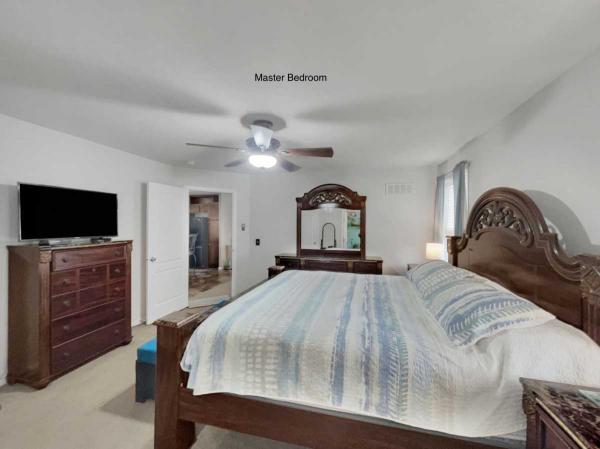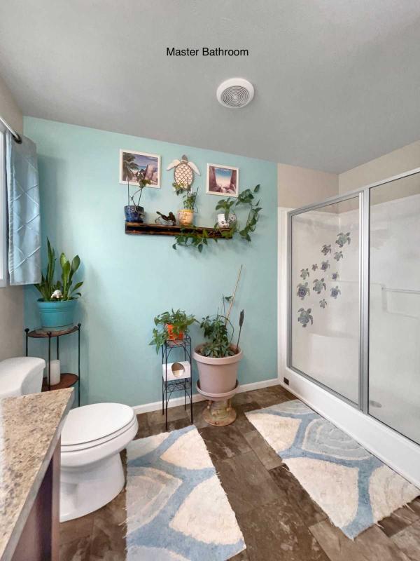 BEDROOMS 2 and 3 sit at the front end of the home with the GUEST FULL BATHROOM. Across the Living Room, sits the MASTER BEDROOM which has a HUGE WALK-IN CLOSET. The PRIVATE BATH features a DOUBLE-SEATED SHOWER, PORCELAIN SINK, LOW-FLOW FAUCETS and VINYL FLOORING.