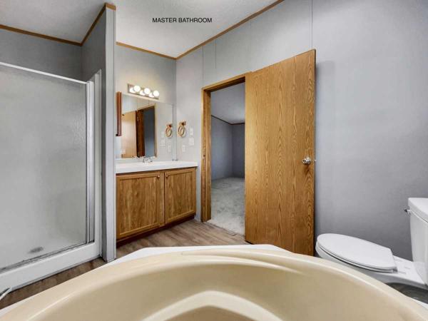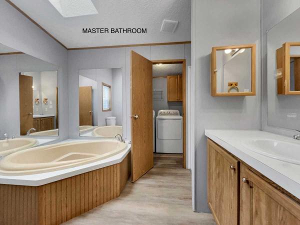 The MASTER BATHROOM has 2 entries, one from the Laundry Room and one from the MASTER BEDROOM. THE BEDROOM has carpeted flooring and a LARGE WALK-IN CLOSET. The PRIVATE BATH has a large GARDEN TUB, SEPARATE SHOWER, SKYLIGHT, PORCELAIN SINK, PLANK FLOORING & A NEW TOILET.
