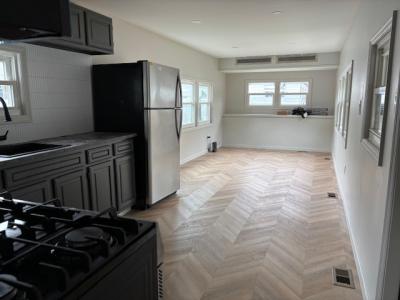 Gut renovated in 2025, chevron flooring, beautiful bathroom. Single wide mobile home with 2 modestly sized bedrooms, but a candidate for expansion to 3 bedrooms.